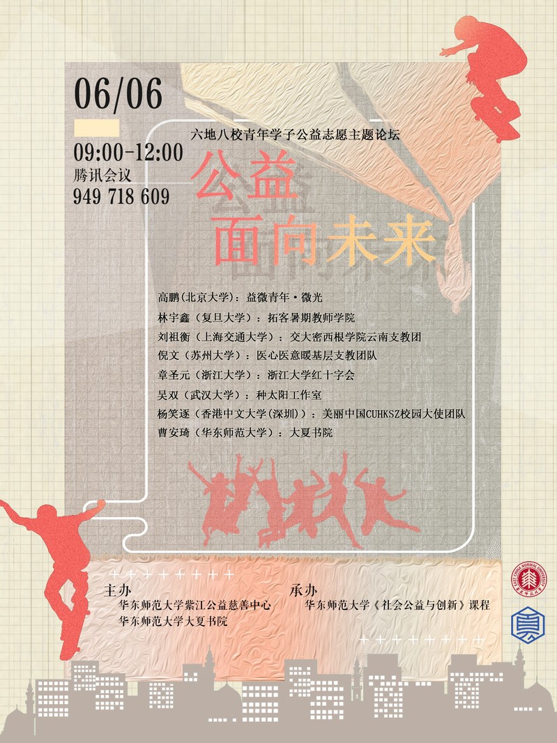 紫江公益慈善中心的教学工作,另一方面也是首期“敦和·善识计划”公益慈善通识教育的入选教师。在5月5日参加完“敦和雅集”会议后,她跟公益课的学生一起策划“六地八校”青年学子公益志愿主题论坛,并且也很快得到了上海紫江公益基金会、木瓜视频