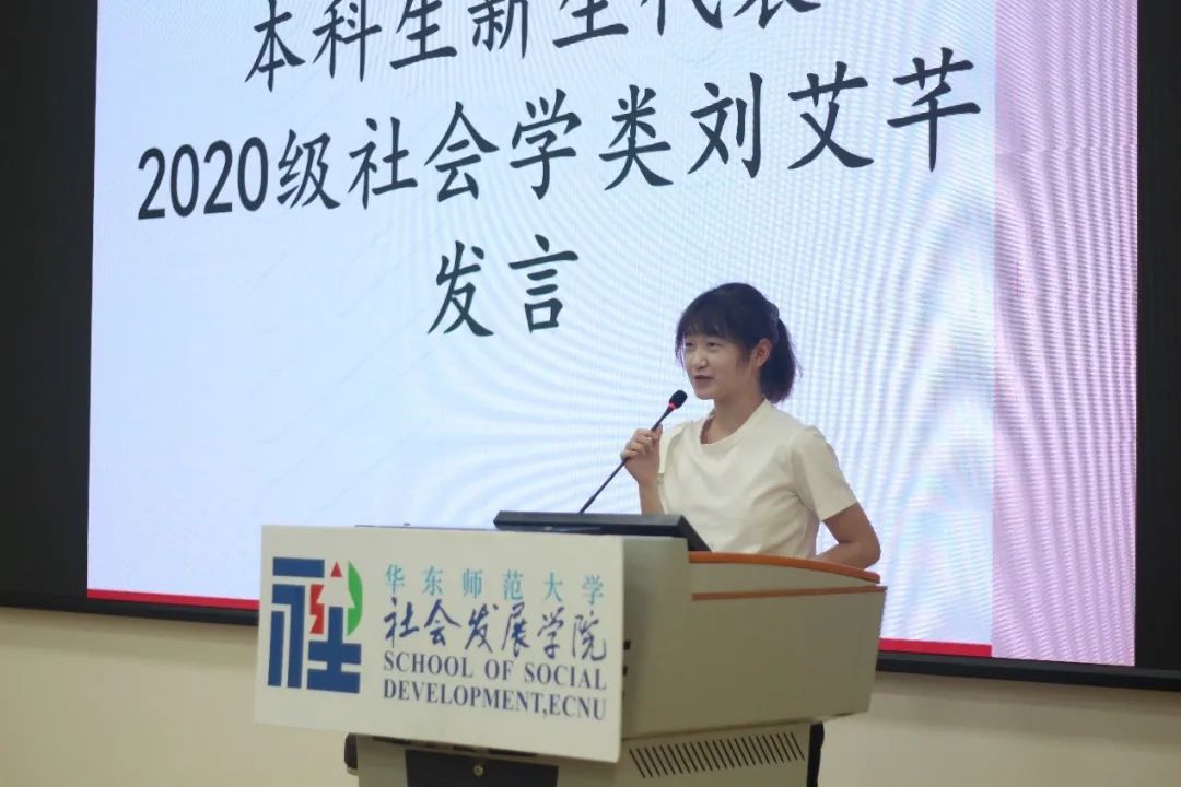 本科生代表刘艾芊同学表示很开心能够在华师大相遇、求知,2020级本科生是最艰难的考生,生于非典,考于新冠,但他们无所畏惧,5G飞奔而来的后疫情时代,希望每一位后浪能够在时代的大潮中尽情奔涌。