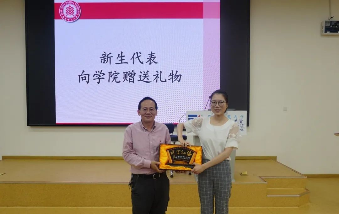 接下来,新生代表向学院赠送了精心准备的礼物——“海纳百川”的工艺品,感恩学院母校,汇集四方莘莘学子,润泽万千知识青年。新生们必定勇攀知识高峰,不负学校和学院栽培,荡起心中读书报国的“蓝色海洋”。