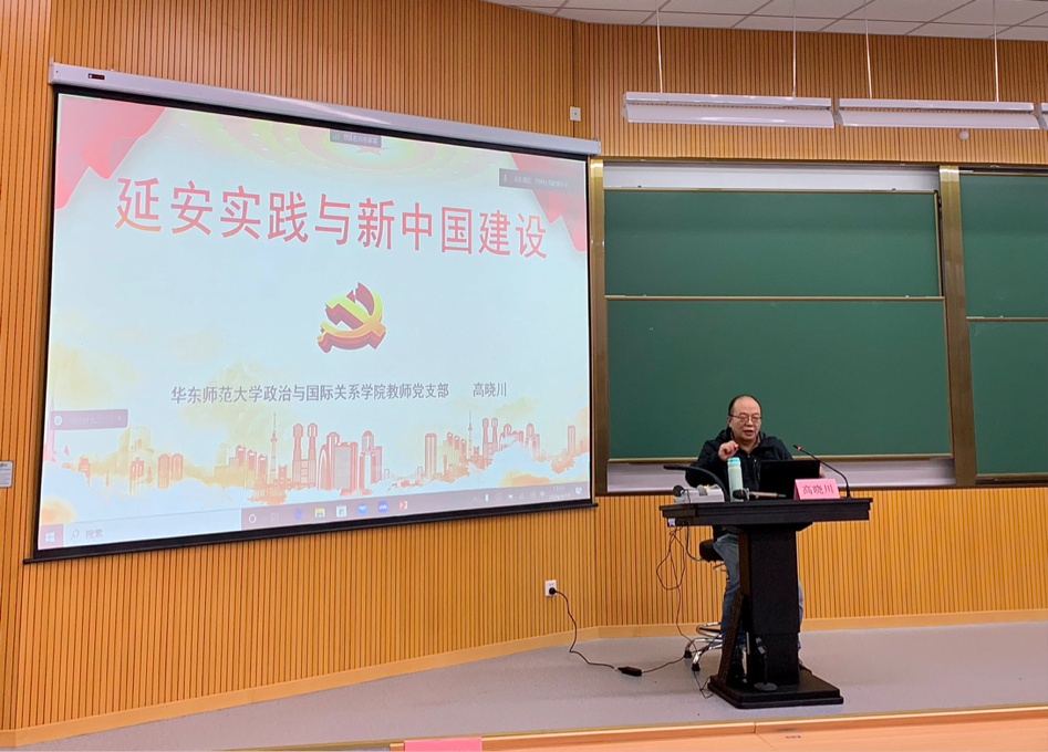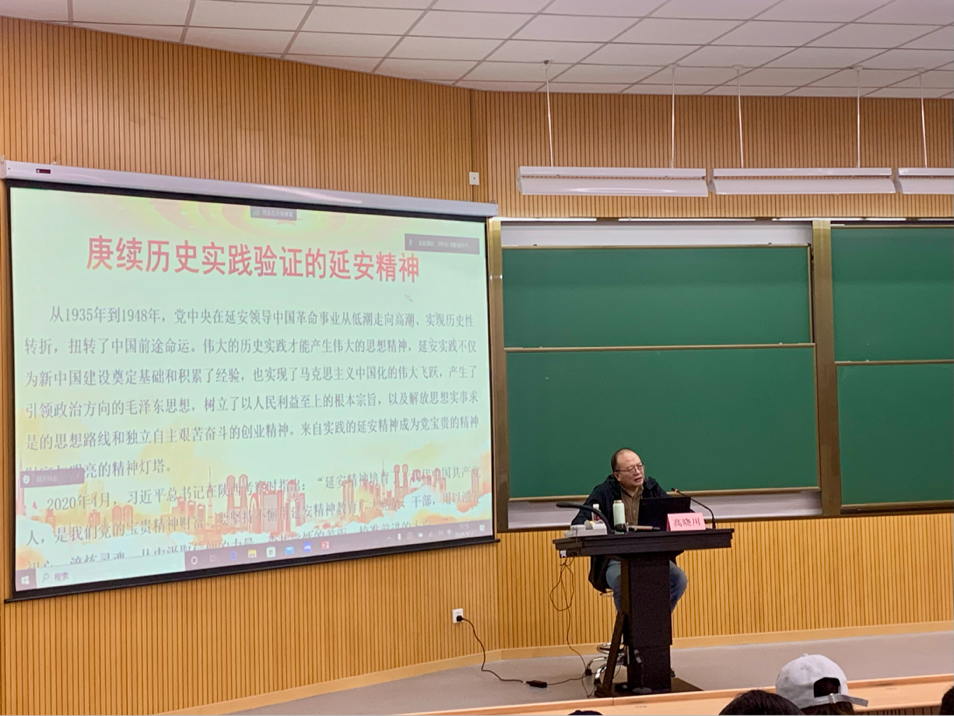 政治与国际关系学院高晓川老师作题为“延安实践与新中国建设”的专题讲座。高晓川先后从陕甘宁边区的政治经济建设、“七大”与中国改革开放的思想渊源、生产力标准的溯源和中共外交实践与国际问题研究的开始四个方面展开,分析伟大延安精神与新中国建设的联系,梳理并总结了延安时期对新中国建设的历史意义。