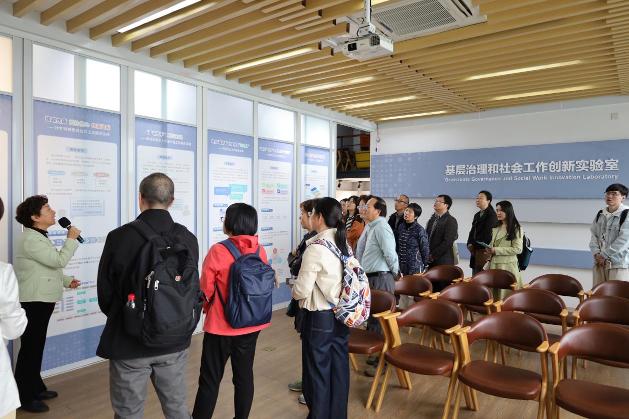 学院教师参观了太仓市社区和社会组织服务中心。该中心构建了社会组织党群服务中心、社会工作服务指导中心、社会组织孵化培育中心等八大平台,推进社会组织全面参与基层社会治理。其中,社会组织党群服务中心为苏州市首家市级社会组织党群服务中心,致力于探索社会组织党的建设与社会工作深度融合新路径。在中心,工作人员全面介绍了太仓市政社互动1.0-4.0“融合式共治”体系的建设思路以及专业临床社工帮扶失独父母群体的案例。