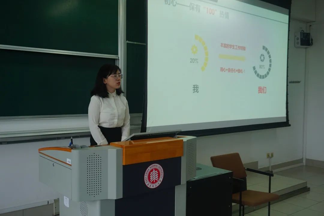 第十一届研究生会主席团,他们对自己过去一年的工作做出了反思和总结,也表达了自己竞选主席团的优势。十二位候选人各具特点,魅力十足,也都表现出对研会工作的热情和并提出了之后在研会工作的展望,他们饱满热情的发言赢得了在座学生代表的阵阵掌声。黄燕老师和在场的学生代表也就工作收获、自身优势和未来规划等多方面对候选人进行了提问,会议现场气氛活跃。