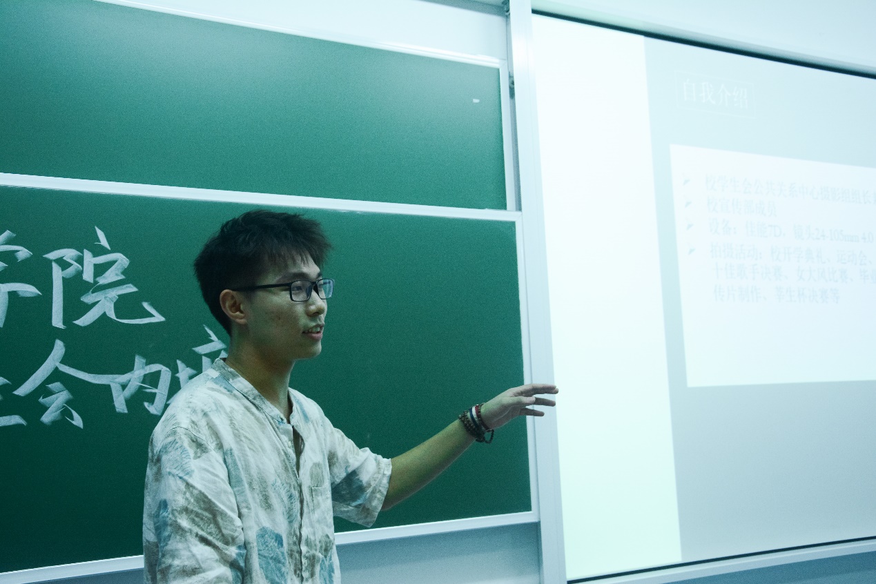 18级何太皓用丰富的图文素材为大家讲解关于摄影的基础知识及摄影的小技巧。在他生动有趣的讲解中,每个人都有属于自己的收获。他具体讲解了关于单反的基础知识,也具体讲解了在不同情境下如何拍出符合要求的活动照。通过鲜明的图片对比,给每一位成员以更直接的体会。尤其是一些实用的小技巧的分享,让每一位成员都有信心也更有能力将学生会的工作做的更好。
