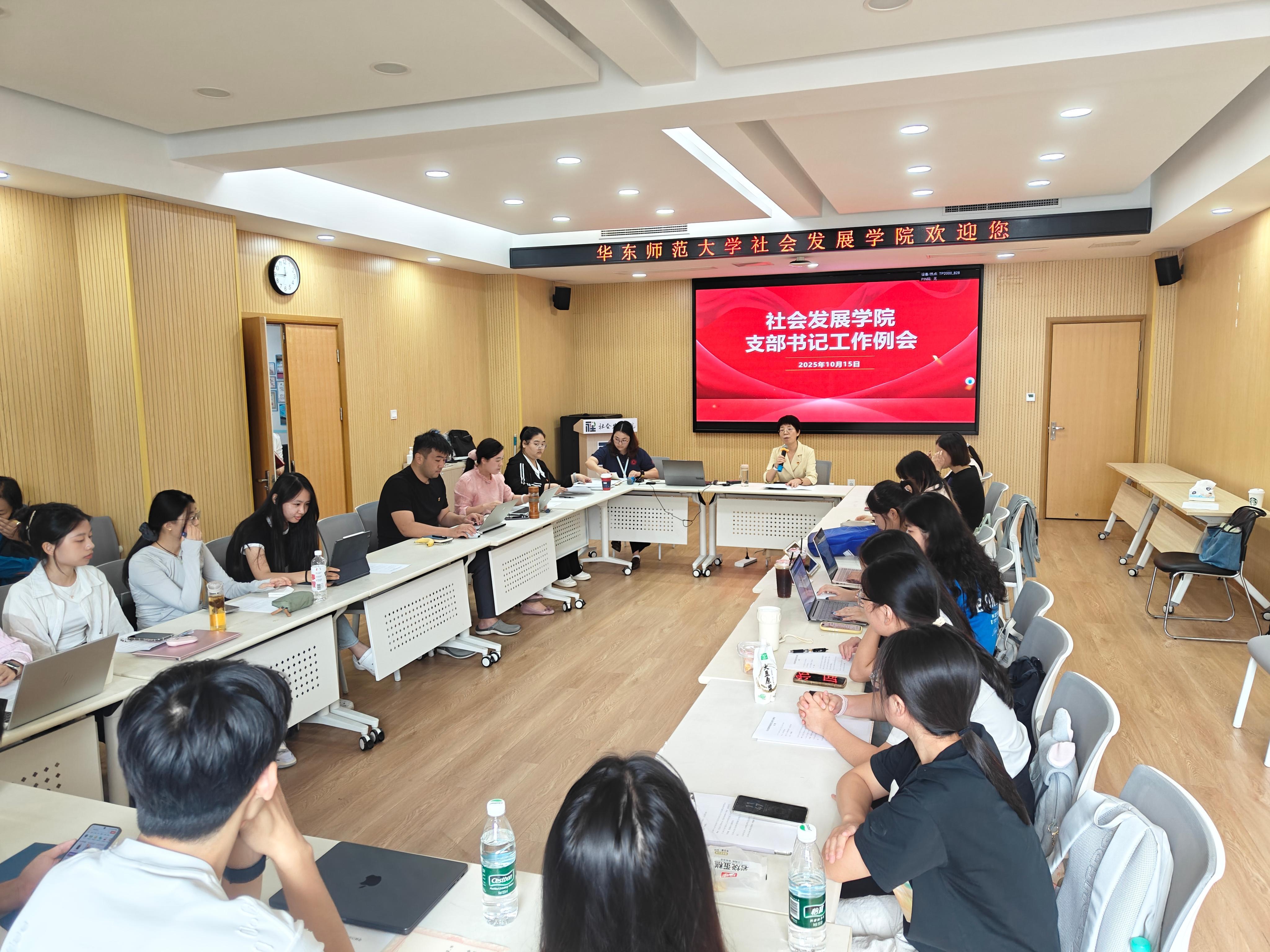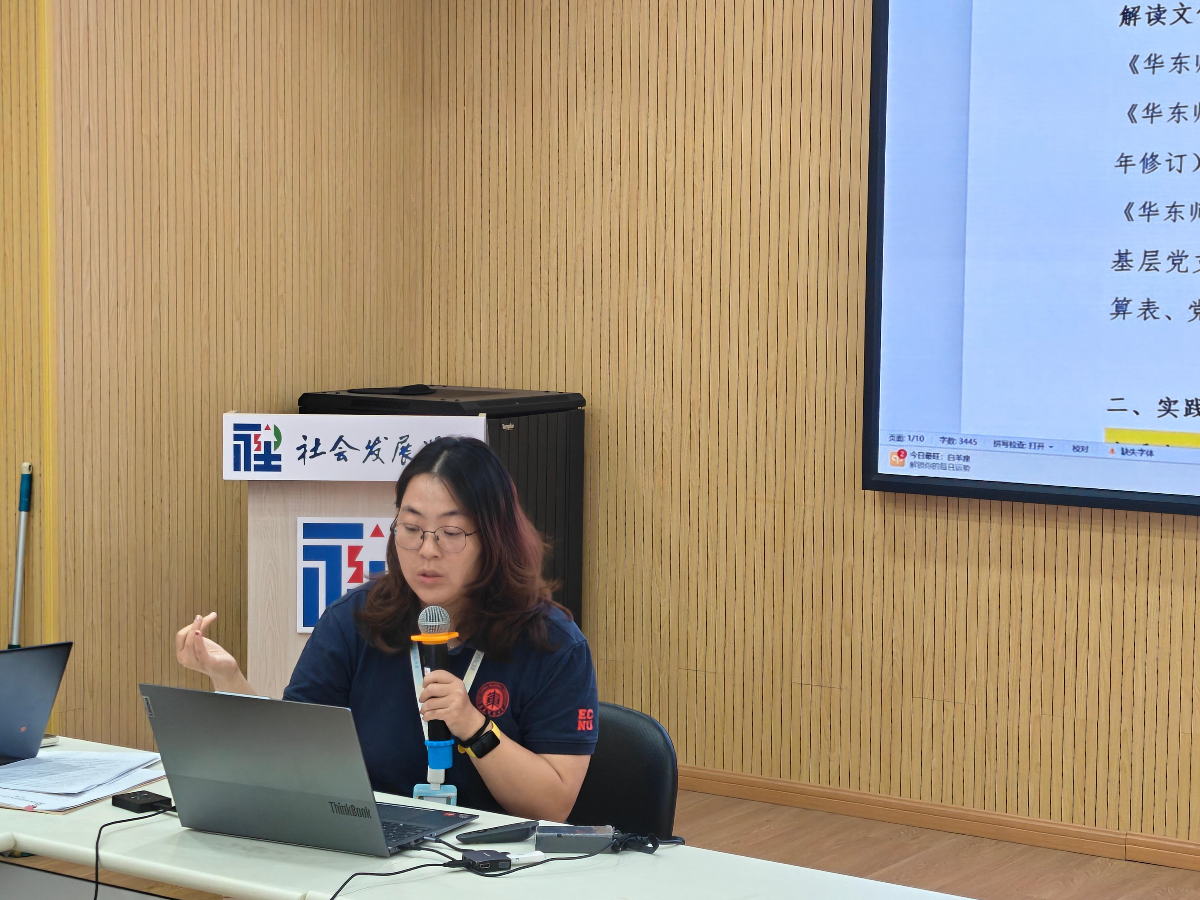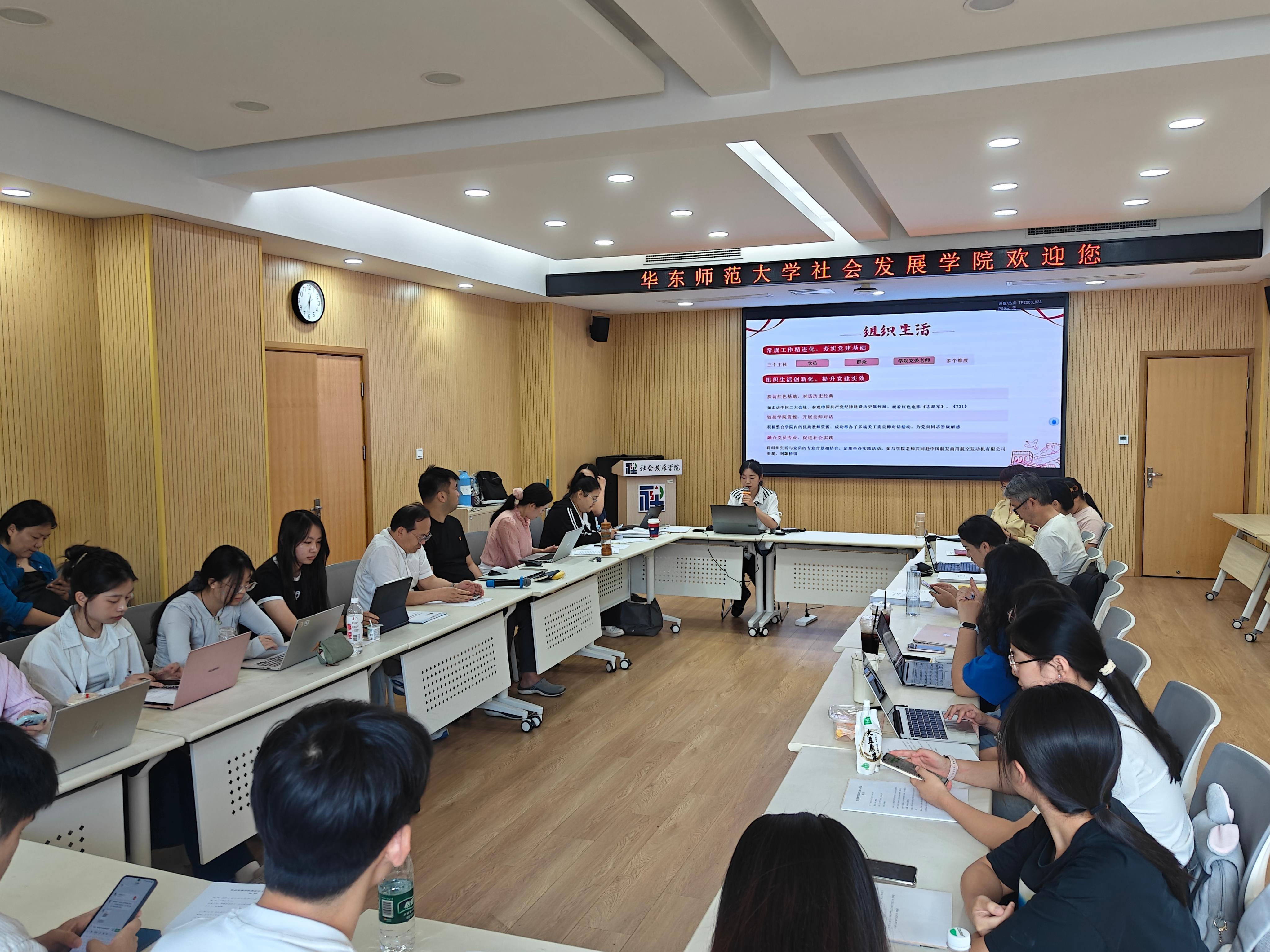 在交流分享环节,各支部依次介绍了本学期工作开展情况与特色亮点。新任支部委员们也借此机会进行了自我介绍,增进了彼此间的了解。人口研究所硕士研究生党支部书记金祥盈作为代表进行分享,她围绕党的六大建设展开,重点介绍了整合优质资源举办“良师说”、党员“开放麦”等特色活动。